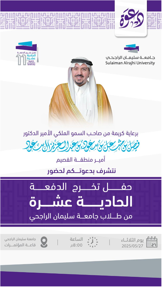 دعوة حفل تخريج الدفعة الحادية عشرة من طلاب جامعة سليمان الراجحي