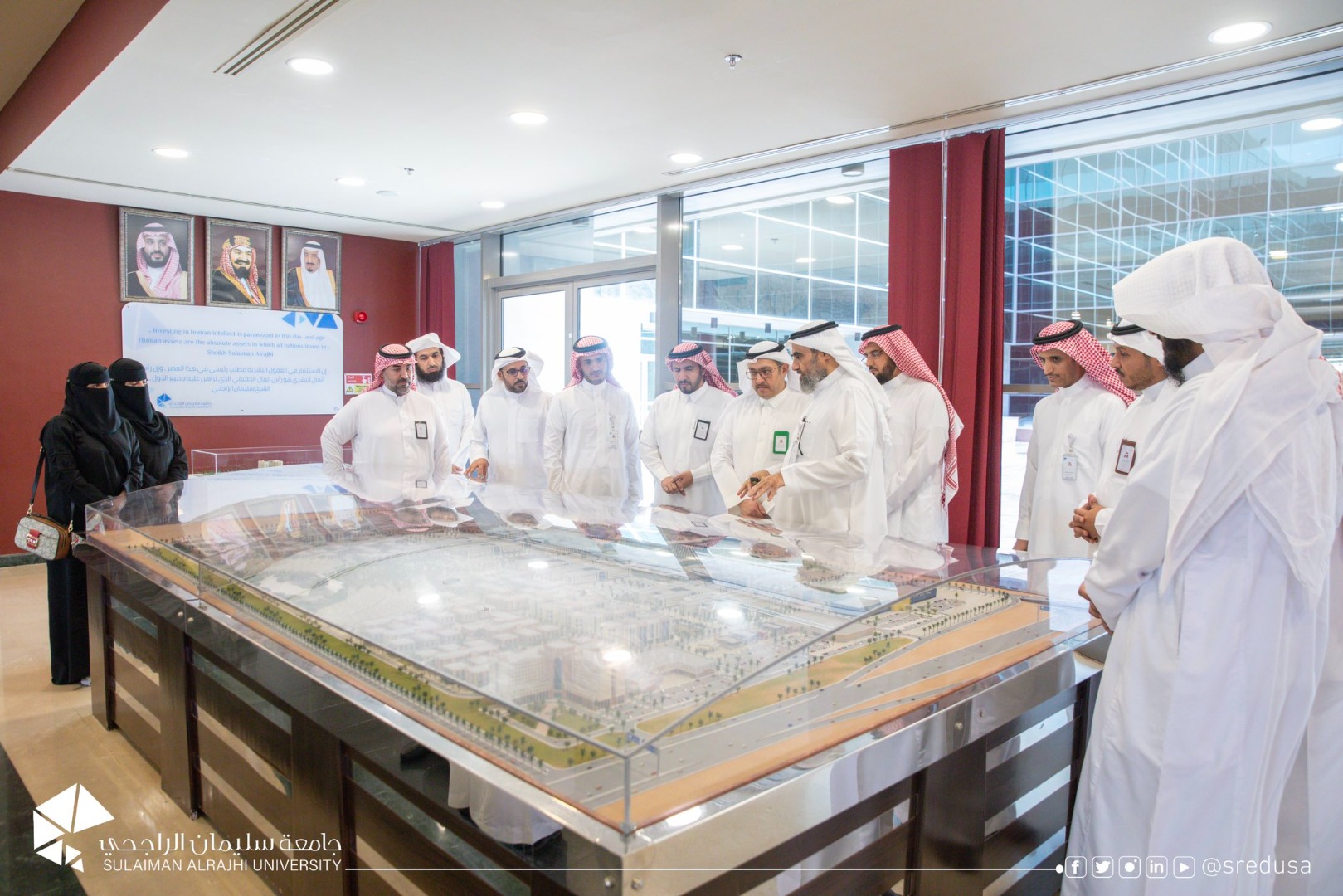 استقبل سعادة رئيس جامعة سليمان الراجحي الدكتور محمد بن عبدالله المحيميد صباح اليوم الأحد بمقر الجامعة سعادة مدير عام الشؤون الصحية بمنطقة القصيم الأستاذ أيمن بن علي الرقيبة والوفد المرافق له، بحضور نواب وعمداء الكليات بالجامعة. وتأتي هذه الزيارة ضمن الاتفاقية المشتركة بين الطرفين والتي وقعت بحضور سمو أمير منطقة القصيم الأمير الدكتور فيصل بن مشعل بن سعود بن عبدالعزيز آل سعود -حفظه الله-على هامش أعمال المؤتمر الدولي الرابع لسلامة المرضى، وجرى خلال الزيارة مناقشة العديد من الموضوعات المتعلقة ببنود الاتفاقية وبحث سبل تعزيز العلاقات بين الجهتين؛ واستعرضت الجامعة خلال الزيارة رؤيتها وتطلعاتها المستقبلية، واختتمت الزيارة بجولة ميدانية على مرافق الجامعة.