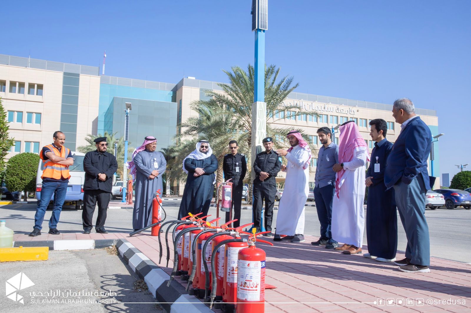 أقامت جامعة سليمان الراجحي ممثلة بوحدة السلامة بالجامعة ورشة عمل عن كيفية استخدام وسائل السلامة وإطفاء الحريق اطلع فيها الحضور على أنواع إنذارات الحرائق وطرق عملها وكذلك على أنواع طفايات الحريق وكيفية استخدامها مع تجربة حية شارك فيها جميع الحضور. تأتي ورشة العمل ضمن مشاركة الجامعة في اليوم العالمي للدفاع المدني الذي يأتي هذا العام تحت مسمى السلامة هدف ووقاية.