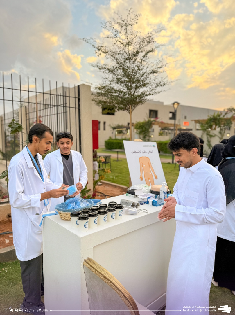 نفّذت جامعة سليمان الراجحي حملة توعوية تثقيفية بالتزامن مع اليوم العالمي للسكري تحت شعار «نتعلّم لنحمي مستقبلنا»، وذلك في حديقة بيلسان بمحافظة البكيرية، بمشاركة طلاب وطالبات الكليات الصحية بالجامعة. وتنوّعت الأركان التوعوية المقدّمة للزوار بهدف تعزيز الوعي الصحي وترسيخ ثقافة الوقاية من مرض السكري عبر الغذاء الصحي، وممارسة النشاط البدني بانتظام، والحفاظ على الوزن الطبيعي، إضافة إلى توفير ركن للفحص الطبي المباشر لقياس مستوى السكر في الدم. وشهدت الفعالية حضوراً واسعاً من أهالي المحافظة وزوار الحديقة، حيث تجاوز عدد المستفيدين من الأركان والفحوصات الطبية 500 زائر، فيما تم إجراء أكثر من 200 فحص لمستوى السكر . يُذكر أن اليوم العالمي للسكري يُصادف الرابع عشر من نوفمبر من كل عام، ويهدف إلى تعزيز الوعي بخطورة المرض وطرق الوقاية منه، إذ يُعد السكري من أبرز التحديات الصحية التي تواجه المجتمعات حول العالم.