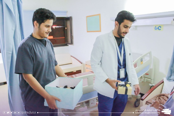 طلاب وطالبات جامعة سليمان الراجحي يزورون المرضى بمستشفى البكيرية