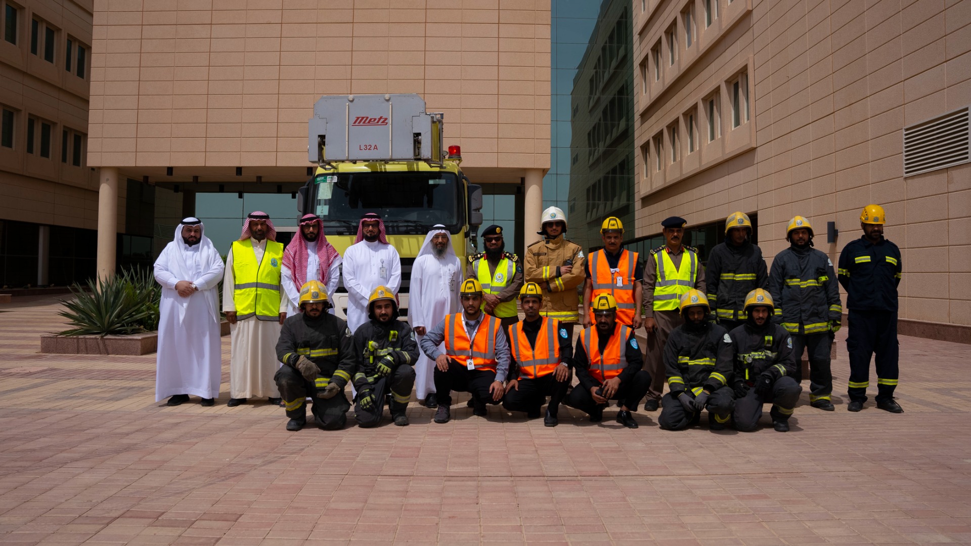 The Facilities Department, represented by the Safety Unit at the university, implemented the hypothesis of evacuating the university buildings in cooperation with the Civil Defense Department in Al-Bukayriyah and with the participation of all relevant sectors. The aim of the Evacuation hypothesis is to raise awareness among male and female students and university employees of evacuation plans, emergency exits and assembly points of Sulaiman Alrajhi Education City.