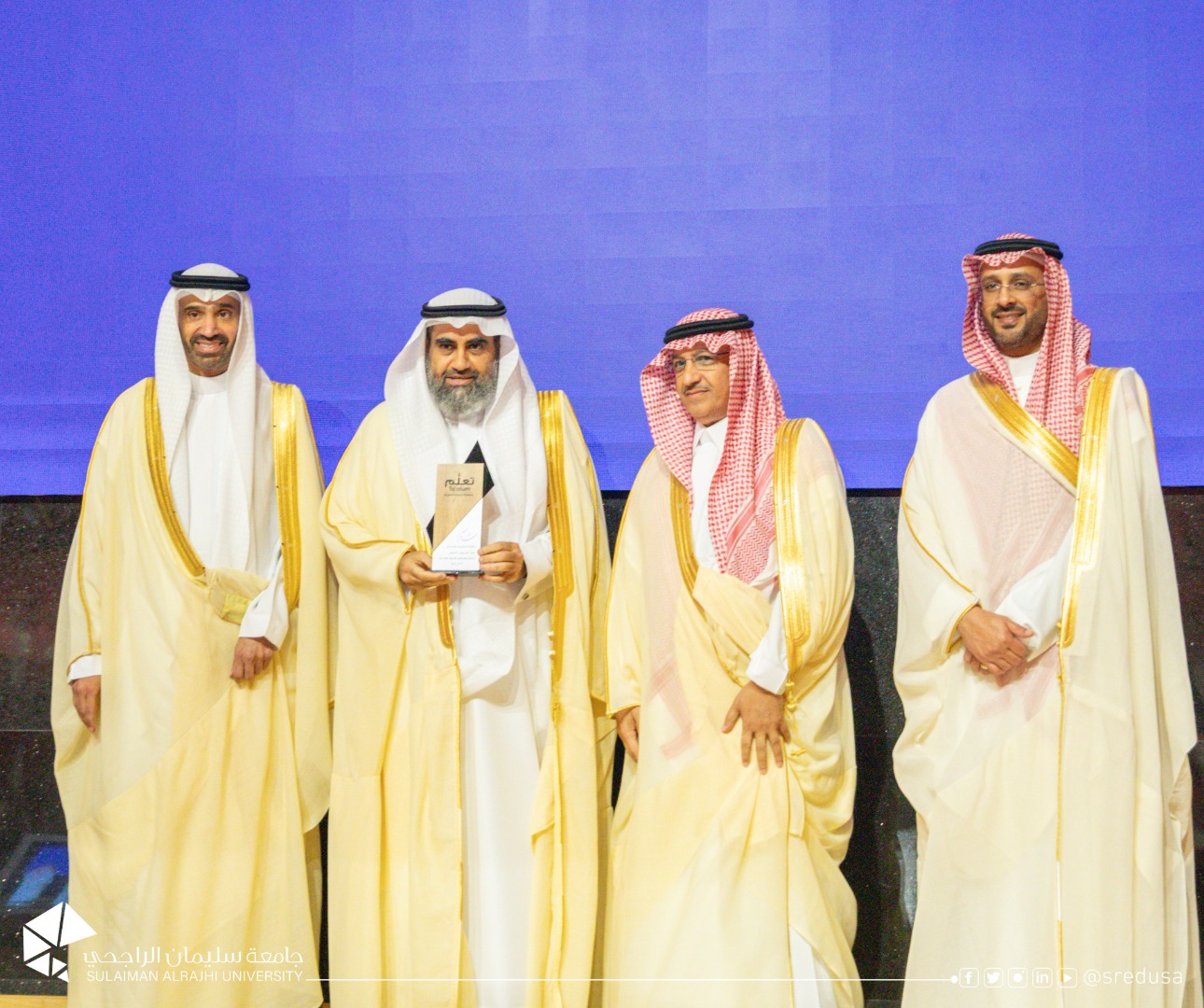His Excellency the Minister of Human Resources and Social Development Eng. Ahmed Sulaiman AlRajhi, Chairman of the Board of Directors of Taalim (Taalum) Association honored Dr. Mohammad Abdullah Almohaimeed, President of Sulaiman AlRajhi University, at the inauguration ceremony of the association’s activities. The event was graced by the presence of His Excellency the Minister of Education, Mr. Yousef Abdullah Al-Benyan. The President of Sulaiman AlRajhi University received this prestigious recognition in acknowledgment of the university’s significant support in the association’s community partnership efforts. The collaboration has achieved numerous targets and aspirations, including the provision of joint scholarships in the university’s academic programs for the association’s beneficiaries.