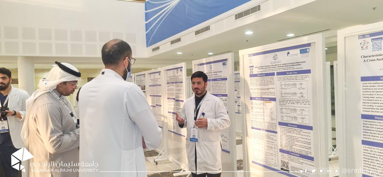 News | Male and female students from the College of Medicine participated with five research projects in the 6th Student Council Symposium for Research held at King Saud University. The students from the College of Medicine achieved first and fifth place in the poster presentation track. This participation aims to encourage students to engage in scientific research and motivate them to highlight their scientific achievements and document them, as an appreciation for their efforts and dedication to academic and research excellence. The symposium serves as an investment for university students to showcase what they have studied throughout their academic journey and the quality of their scientific projects. It also fosters collaboration and discussion among medical students across the Kingdom. #World-ClassEducationInALocalEnvironment #Sulaiman_AlRajhi_University